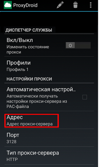 Once you get the rights, the easiest way is to install the program ProxyDroid. The principle of work - When you connect the Internet, the phone communicates with the proxy server and works through it. The principle: Download and launch the program. In the menu item "Proxy configuration" select "Address", add the IP, click OK.