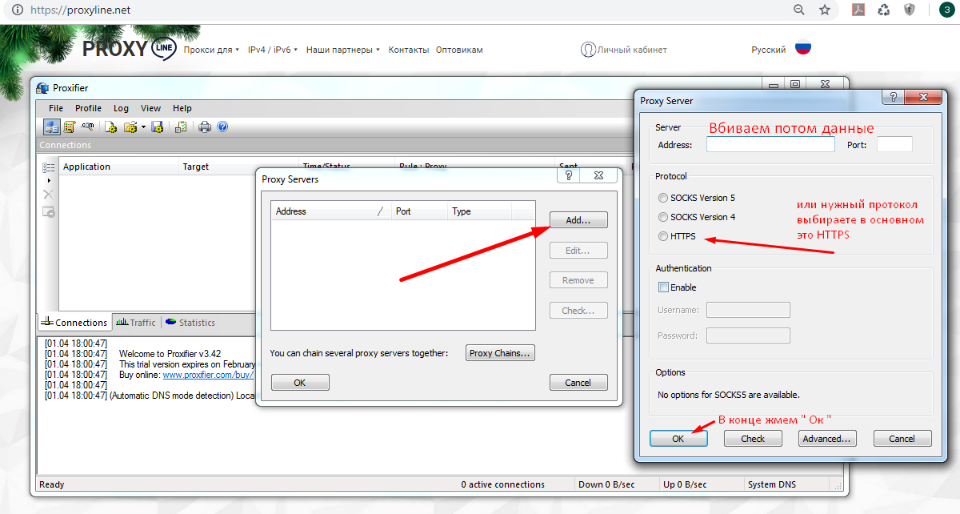 If you click NO in the last action, the window for entering a new proxy will be displayed again, and the previously entered proxy will already be displayed in the list, but will not be activated.